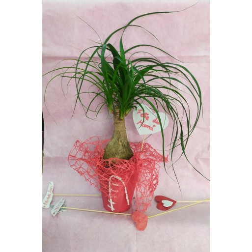 Planta de beaucarnea con macetero de goma eva y papel decorada.